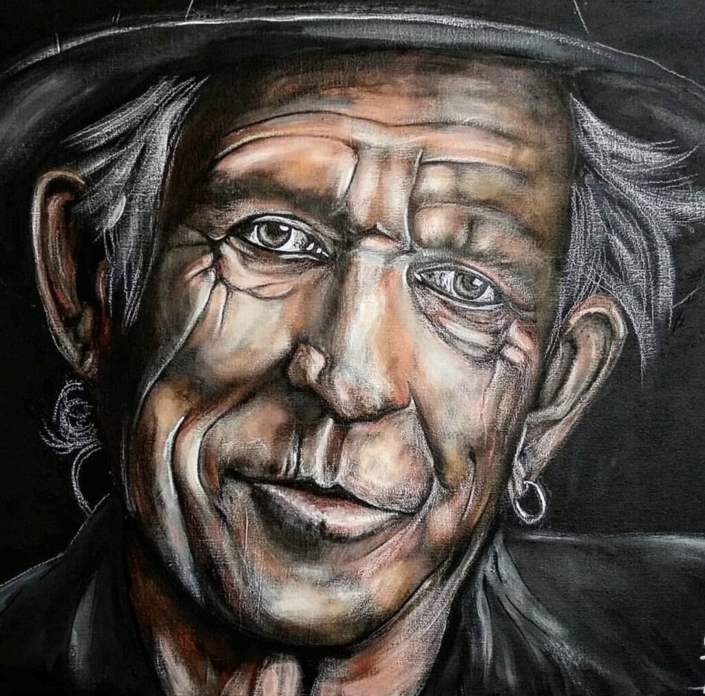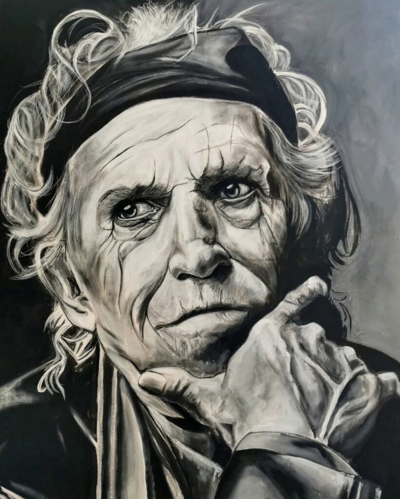 Keith Richards, acrylic and charcoal on canvas, 125×100,2022